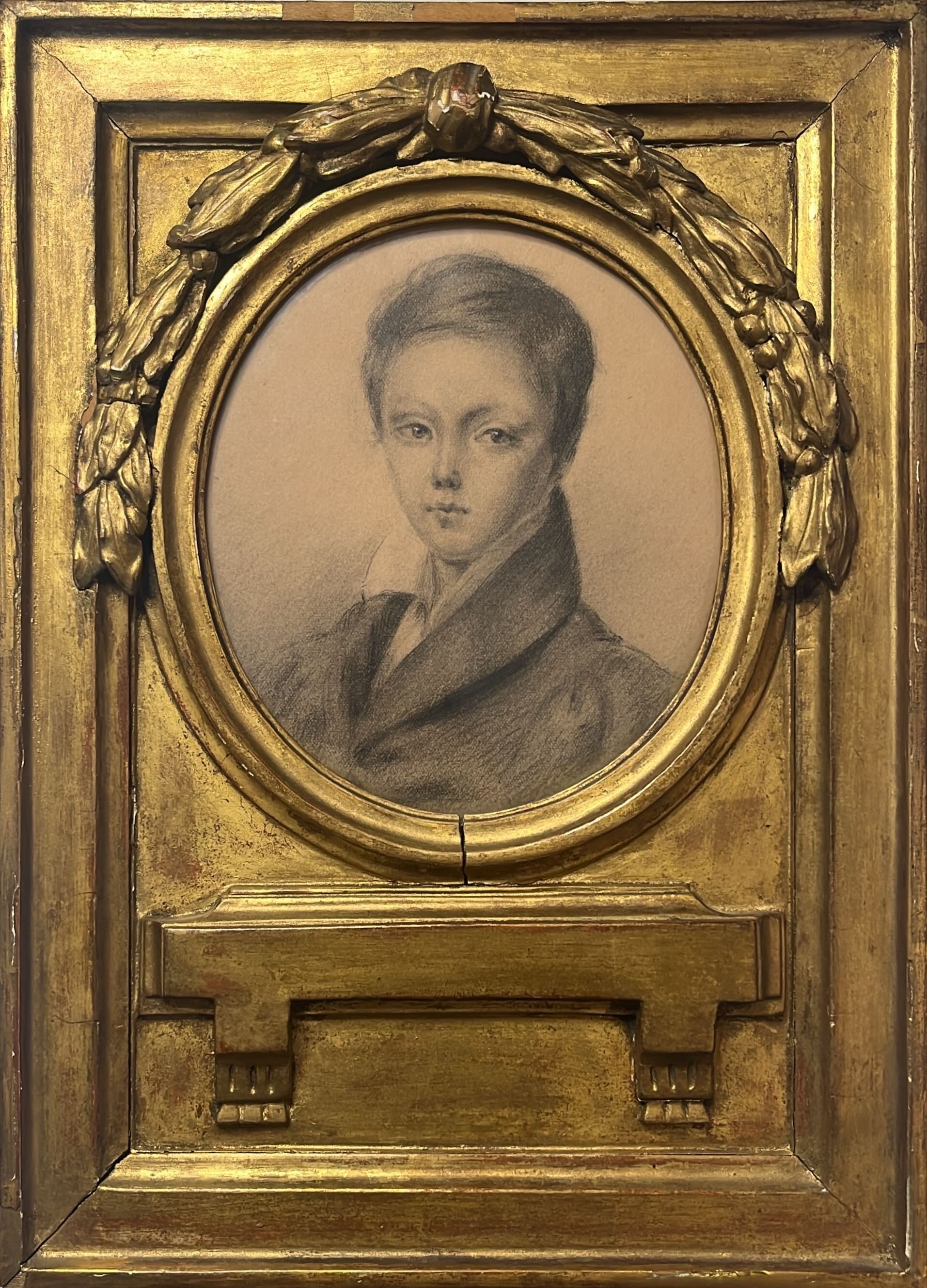Pencil. Size of sheet (oval): 15.5 x 14 cm. Size of frame: 30.1 x 21.9 cm.