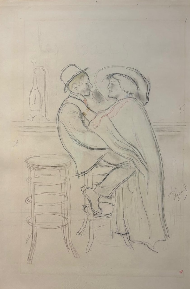 A fine preparatory drawing for the artist’s own etching ‘Au Bar’ (A352).1
