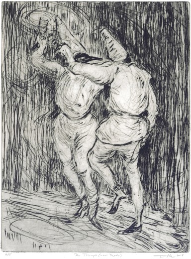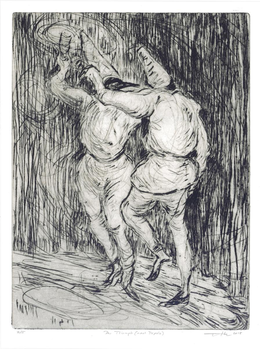 Drypoint. Size of plate: 39.3 x 29.6 cm. Size of sheet: 43.2 x 32.3 cm.