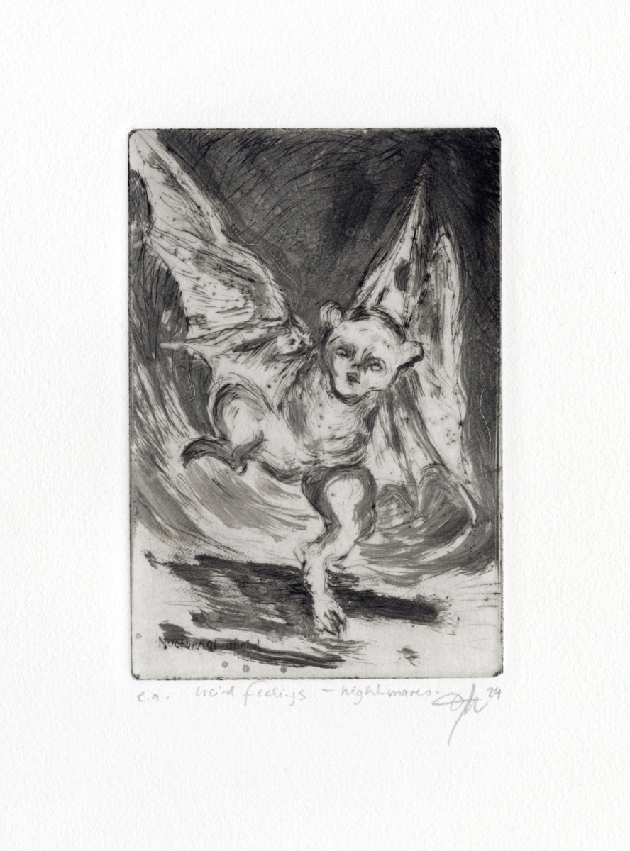 Drypoint. Size of plate: 14.7 x 10 cm. Size of Sheet: 23.8 x 17.3 cm.
