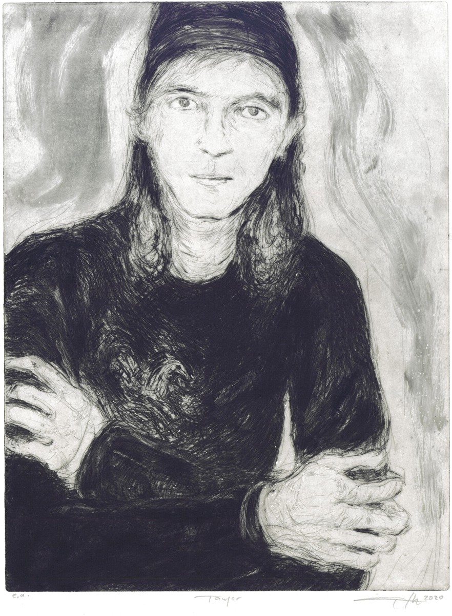 Drypoint and monotype. Size of plate: 39.4 x 29.8 cm. Size of sheet: 45.2 x 34.7 cm.