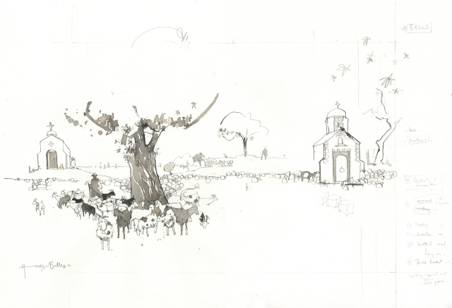 Pen and Ink. Size of sheet: c.42 x 60 cm.