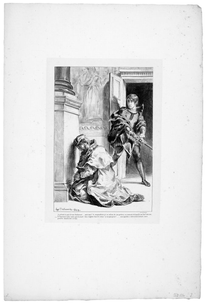 Hamlet tente de tuer le roi, 1843. Delteil 110.I/II.