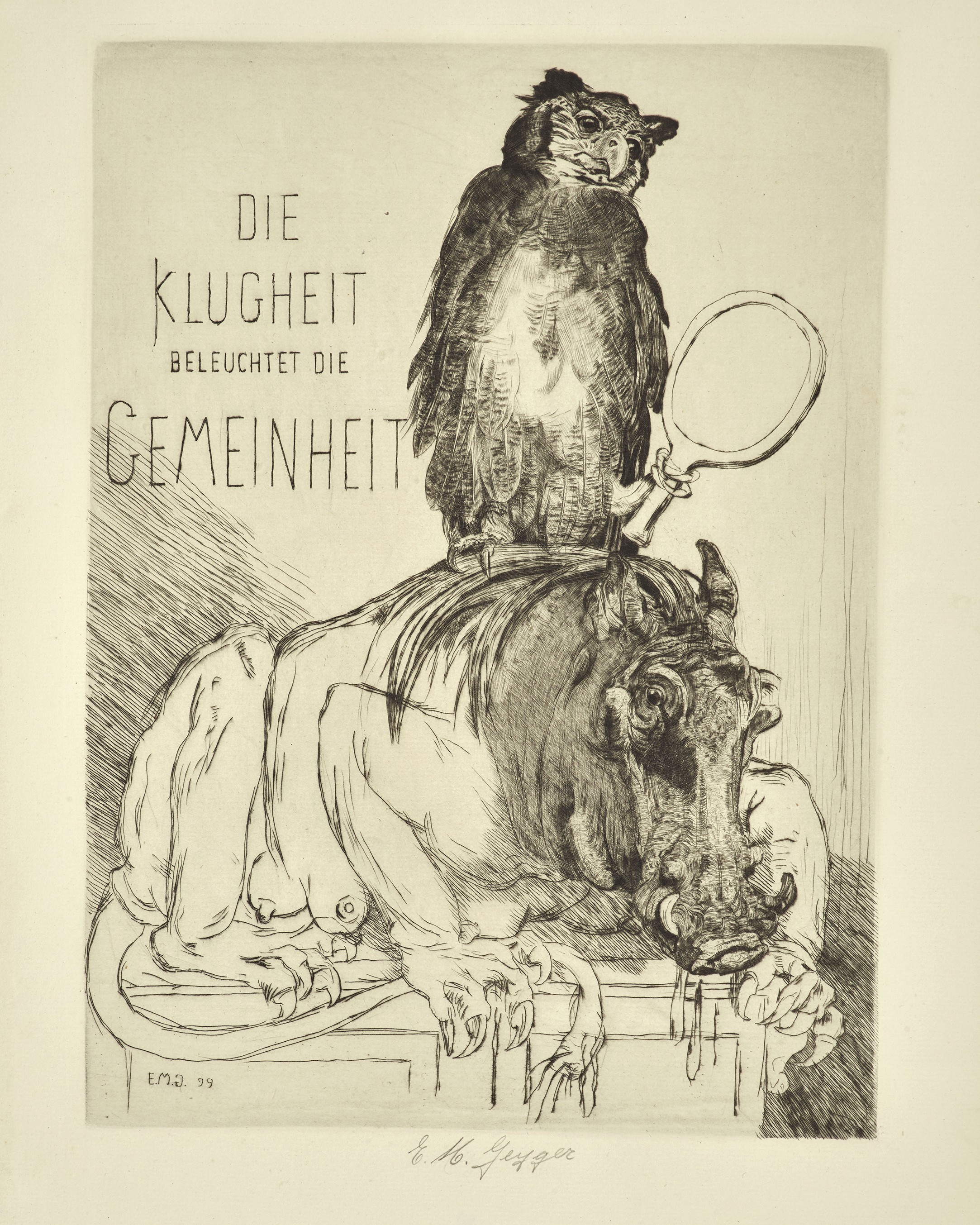 Geyger moved to Florence in 1895 and founded a printing workshop. After abandoning painting, he concentrated on printmaking and sculpture, in a similar way to his contemporaries Karl Stauffer-Bern and Max Klinger, who also both lived in Florence. Today Geyger is mostly known for his sculptures; indeed his best known sculpture, ‘Bogen- schütze’, has been cast in different sizes and materials, including silver. Despite having a printing workshop in Florence, Geyger’s printed works are hardly known, and because of that he has never been included in surveys of German-speaking printmakers in Florence at the turn of the century. Nonetheless, his prints are technically outstanding, and he should be regarded as a symbolist artist, situated between Max Klinger and Richard Müller (1874–1954).