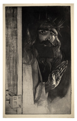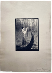 Hand-coloured woodcut on japon paper, laid onto wove paper on board.