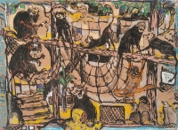 Kate McCrickard (b.1975, Kasama, Zambia) draws inspiration from the happenings in her local area of Belleville, Paris. The sketchy and highly diaristic nature of her works lend them a certain Parisian grittiness and edge. It is the intimacy and direct nature of her paintings and drawings, documenting the daily life of her family and surroundings, that is particularly refreshing to see. McCrickard conforms neither to current art trends nor agendas but conveys purely that which she wants to say and show through her work.