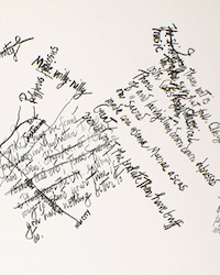 The iconic American composer John Cage's work changed the course of twentieth-century music. The experimental, playful and meditative aspects of his music are evident in our prints: text and image are placed by chance to simultaneously destruct and create meaning.