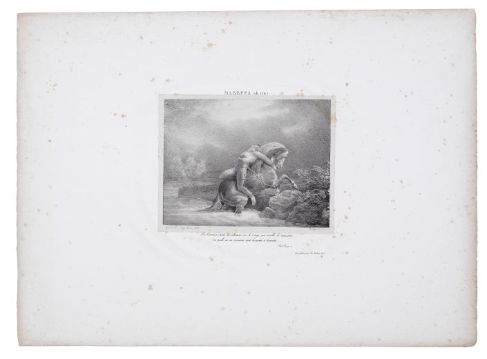 Part of the series of six lithographs Oeuvres de Lord Byron, published in 1823. Four lithographs - all displayed in our exhibition - were the result of the collaboration between Gericault and Lami, the other two were by Lami only.