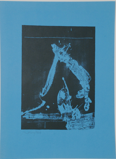 Sequence of six proof impressions aside the edition of 100. All signed and inscribed 'trial' except one inscribed 'A/P'. One trial proof printed in blue on white paper; one trial proof printed in black on blue paper; two trial proofs printed in black on white paper; one trial proof printed in black on celadon green paper; one artist proof printed in turquoise on white paper.