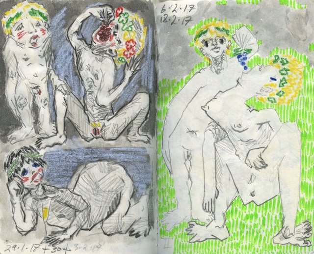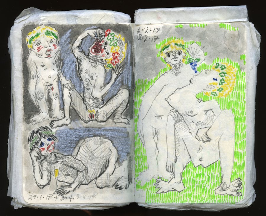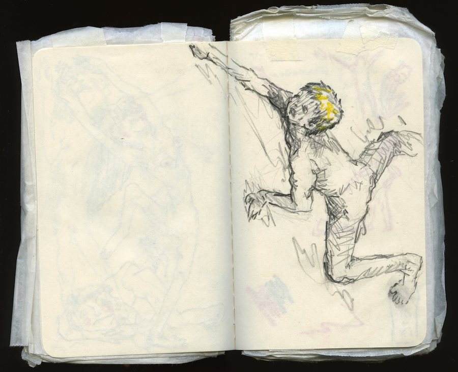 Pencil, oil paint and watercolour in sketchbook. 10 x 16 cm (closed)