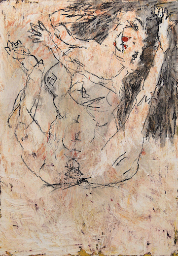Charcoal and oil pastel on primed wood. 30 x 21 cm.