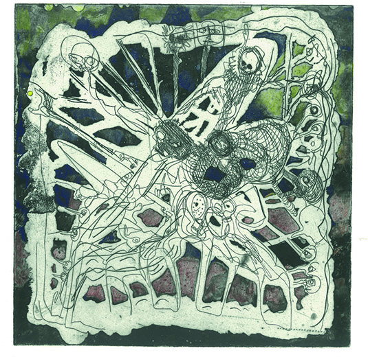 Etching. Size of sheet: 29 x 29 cm; size of plate: 20 x 20 cm.