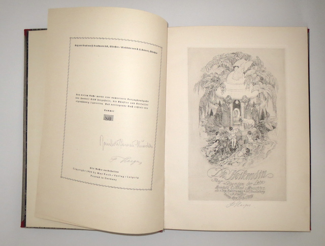 Including six signed original etchings by Ferdinand Staeger, after the novel by Reinhold Conrad Muschler (1882 - Berlin - 1957). Signed by both the author and the artist. Numbered 80 from the first edition of 100. 130p. Published by Max Koch in Leipzig. In its original binding.