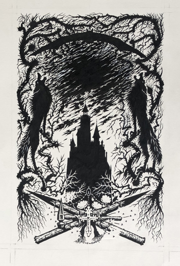 Black ink on Fabriano Artistico handmade watercolour paper. Size of image: 25 x 16 cm. Size of sheet: 40 x 30 cm.