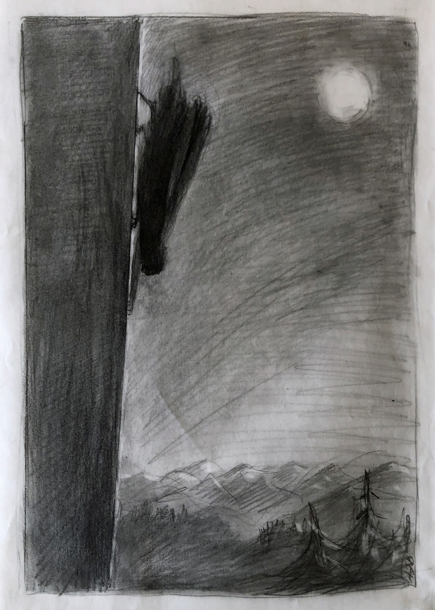 "Begin to crawl down the castle wall" - Preliminary drawing 2021