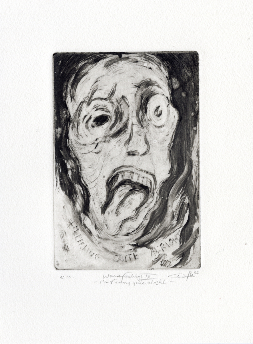 Drypoint. Size of plate: 14.7 x 10 cm. Size of Sheet: 23.8 x 17.3 cm.