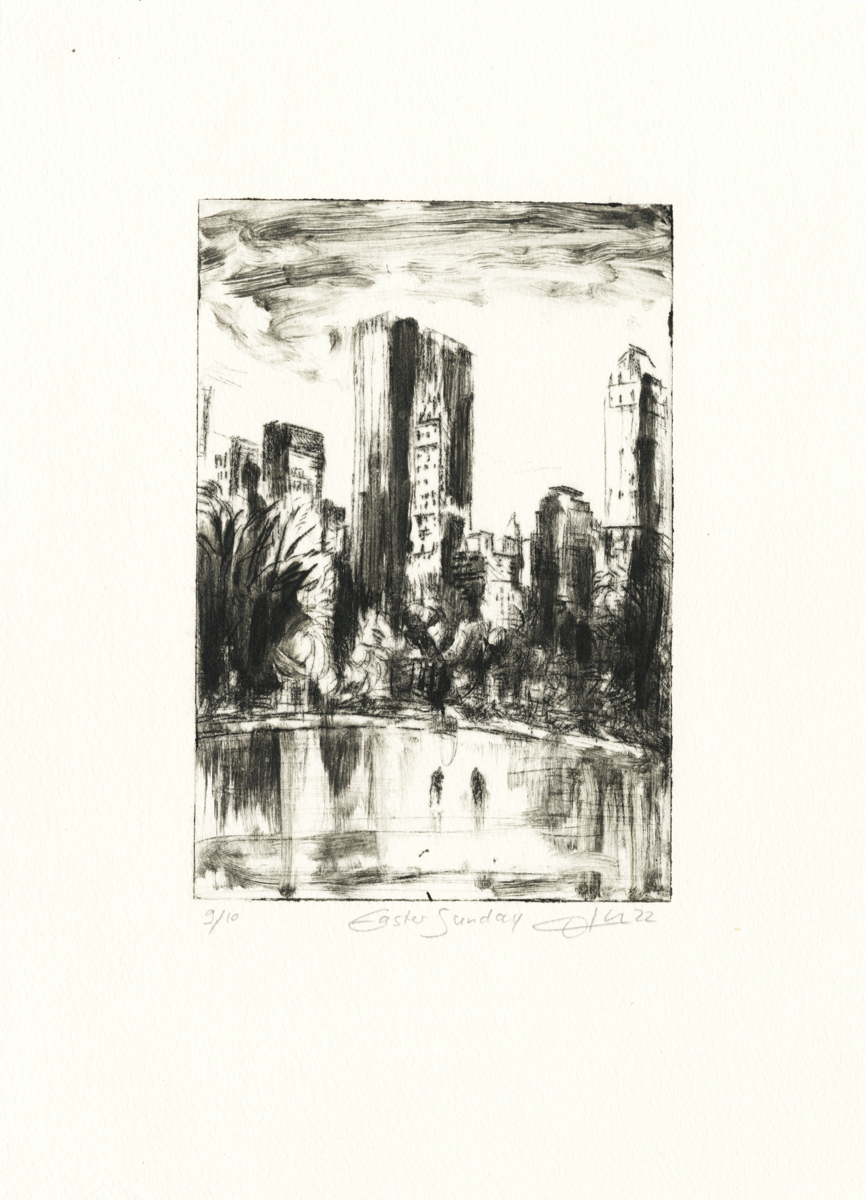 Drypoint and monotype. Size of plate: 14.4 x 9.8 cm. Size of sheet: 23.7 x 17.5 cm.