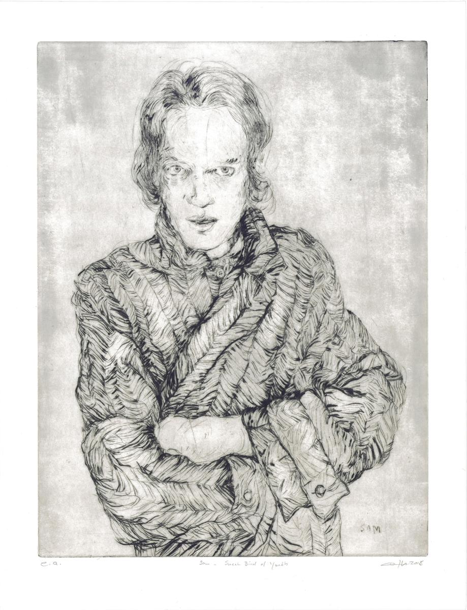 Drypoint. Size of plate: 39.3 x 29.7 cm. Size of sheet: 46.5 x 35.7 cm.