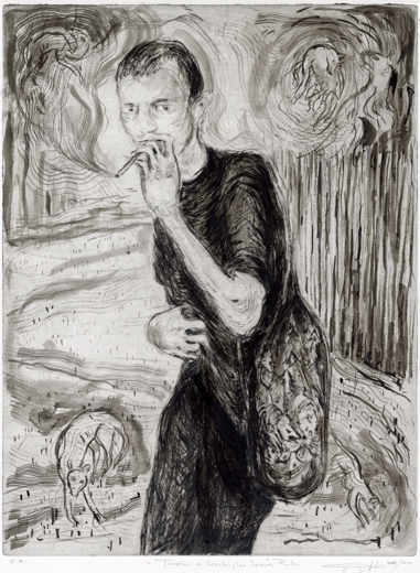 Drypoint. Size of plate: 39.1 x 29.5 cm. Size of sheet: 46.9 x 35.1 cm.