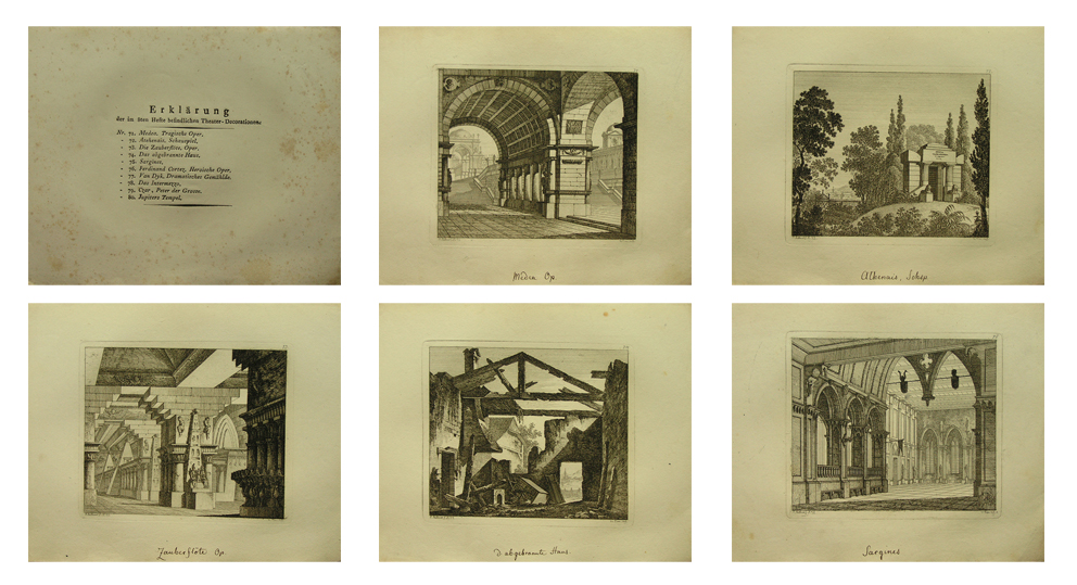 No. 71 Medea (Tragische Opera); No. 72 Atehenais (Schauspiel); No. 73 Die Zauberflöte (Opera); No. 74 Das abgebrannte Haus; No. 75 Sargines; No. 76 Ferdinand Cortez (Heroische Opera); No. 77 Van Dyck (Dramatisches Gemählde); No. 78 Das Intermezzo; No. 79 Czar, Peter der Grosse; No. 80 Jupiters Tempel.